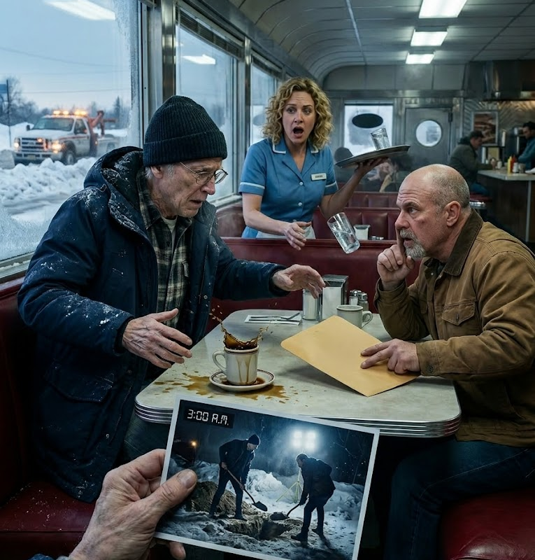 MY WIFE DIED, AND BOTH MY SONS “COULDN’T MAKE IT” TO HER FUNERAL—ONE BLAMED A MULTI-MILLION DOLLAR MERGER, THE OTHER TEXTED ABOUT A FLIGHT DELAY LIKE I WAS ASKING HIM TO PICK UP GROCERIES. I BURIED HER ALONE IN A BLIZZARD… UNTIL A STRANGER STOPPED ME THE NEXT DAY AND PRESSED A PHOTO INTO MY HAND: 3:00 A.M., TWO FIGURES IN DESIGNER JACKETS, DIGGING LIKE MADMEN BESIDE MY WIFE’S FRESH GRAVE. MY SONS. NOT MOURNING—PANICKED. BEFORE I COULD EVEN SPEAK, THE MAN LEANED IN AND WHISPERED, “I HAVE SOMETHING WORSE,” THEN SLID AN ENVELOPE ACROSS THE TABLE THAT MADE MY BLOOD TURN TO ICE—BECAUSE IT WASN’T JUST PROOF THEY’D BEEN THERE… IT WAS PROOF OF WHAT THEY WERE TRYING TO GET BACK BEFORE ANYONE ELSE FOUND IT.